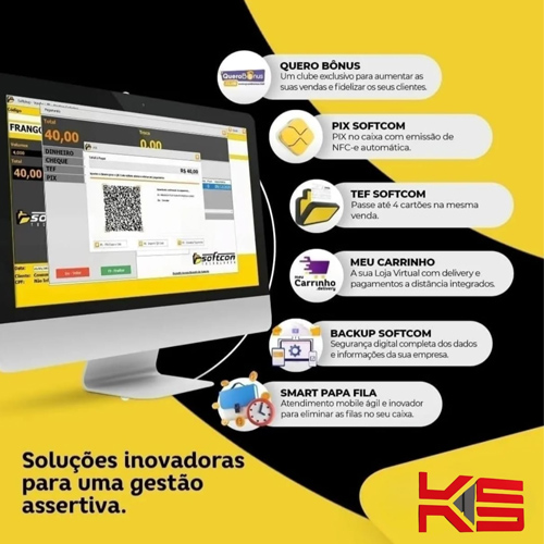 Software para maquininhas e computadores, incluindo emissão de nota fiscal, controle de vendas, estoque e financeiro.